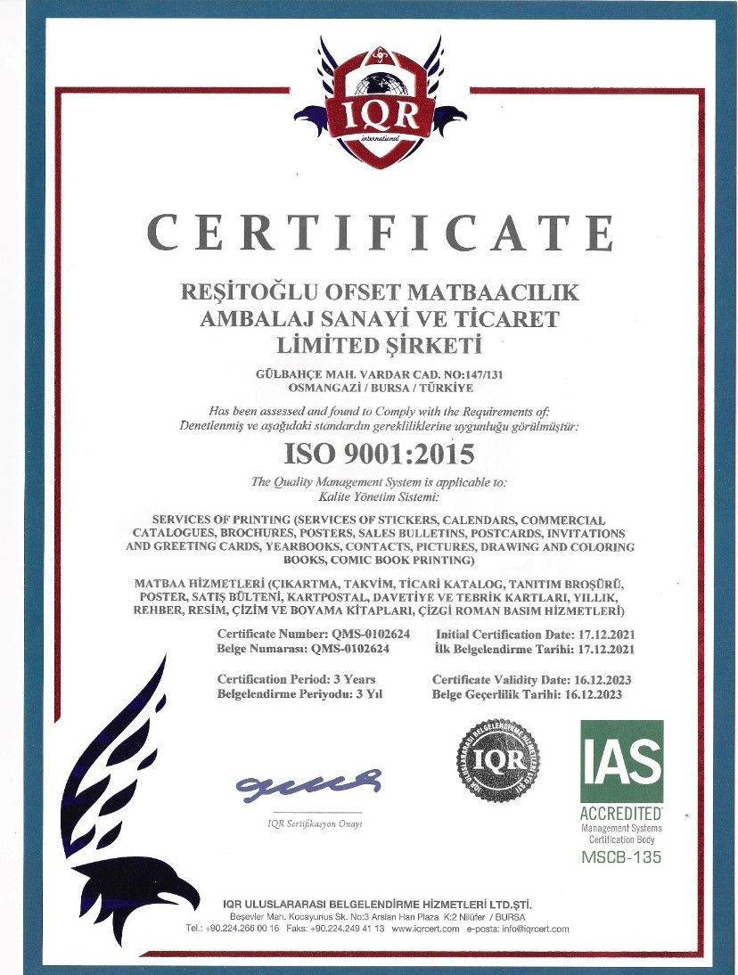 İSO 9001:2015 Kalite Belgesi